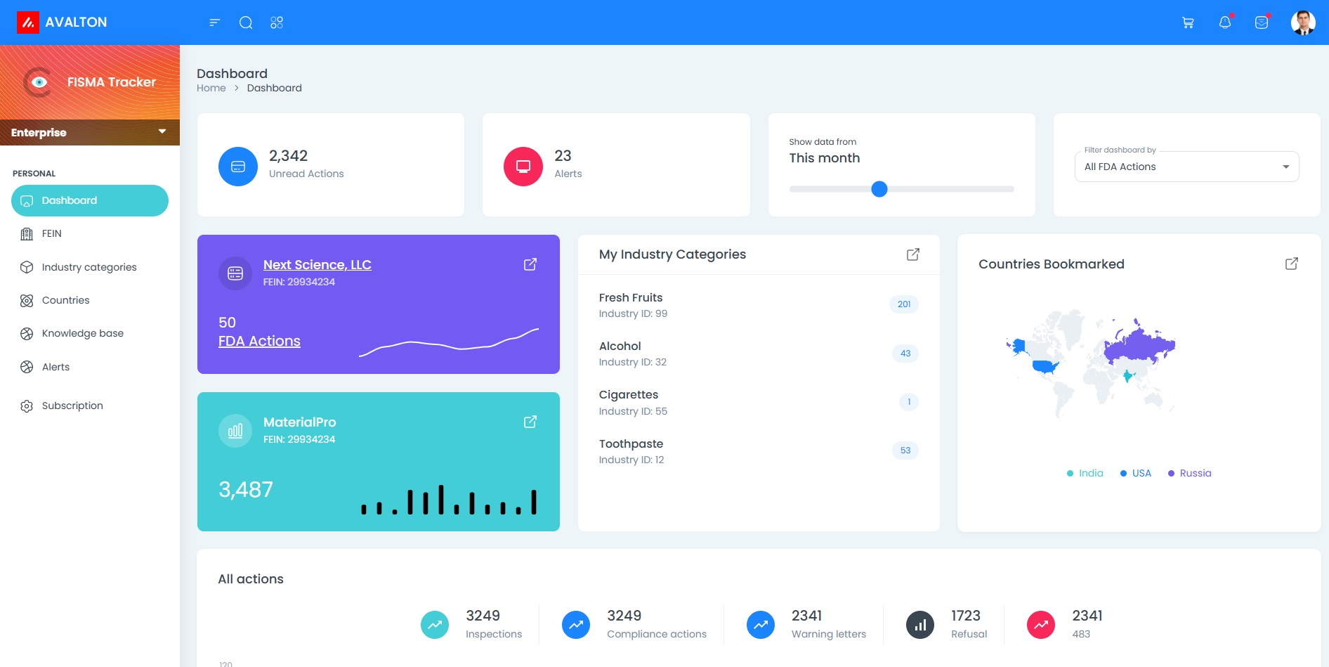 The platform allows users to monitor FDA compliance activities by Country of origin.